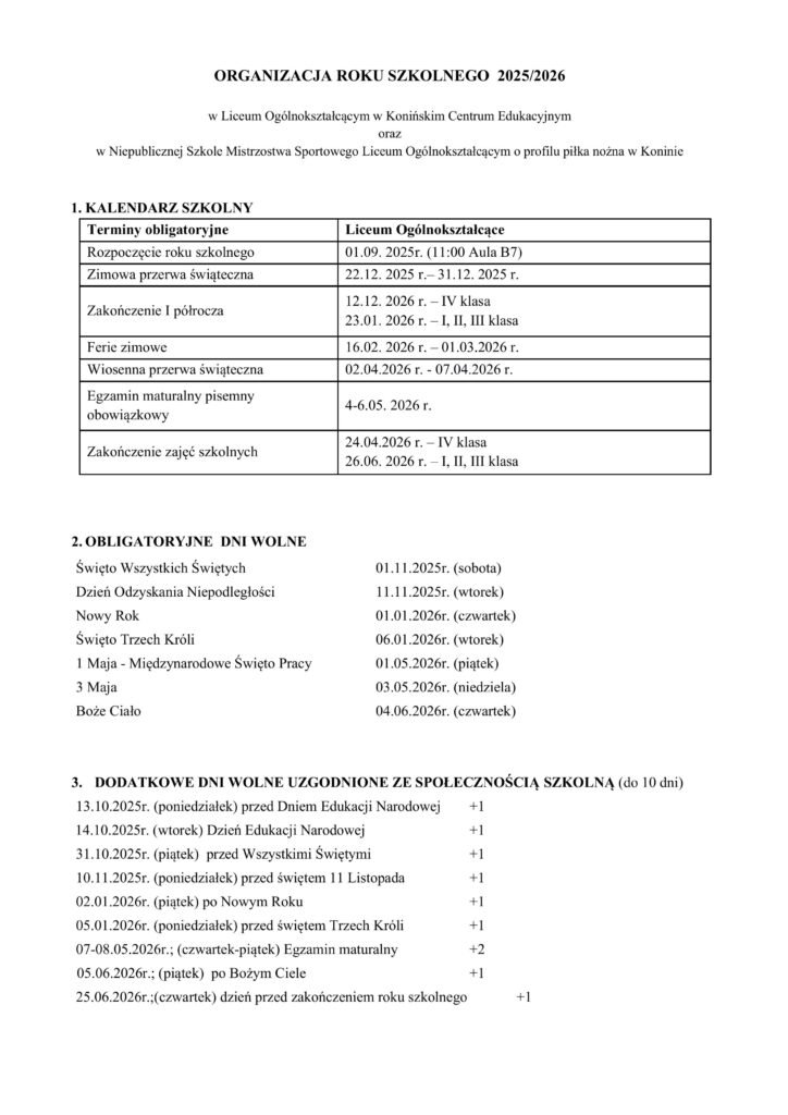 ORGANIZACJA ROKU SZKOLNEGO 2025-26